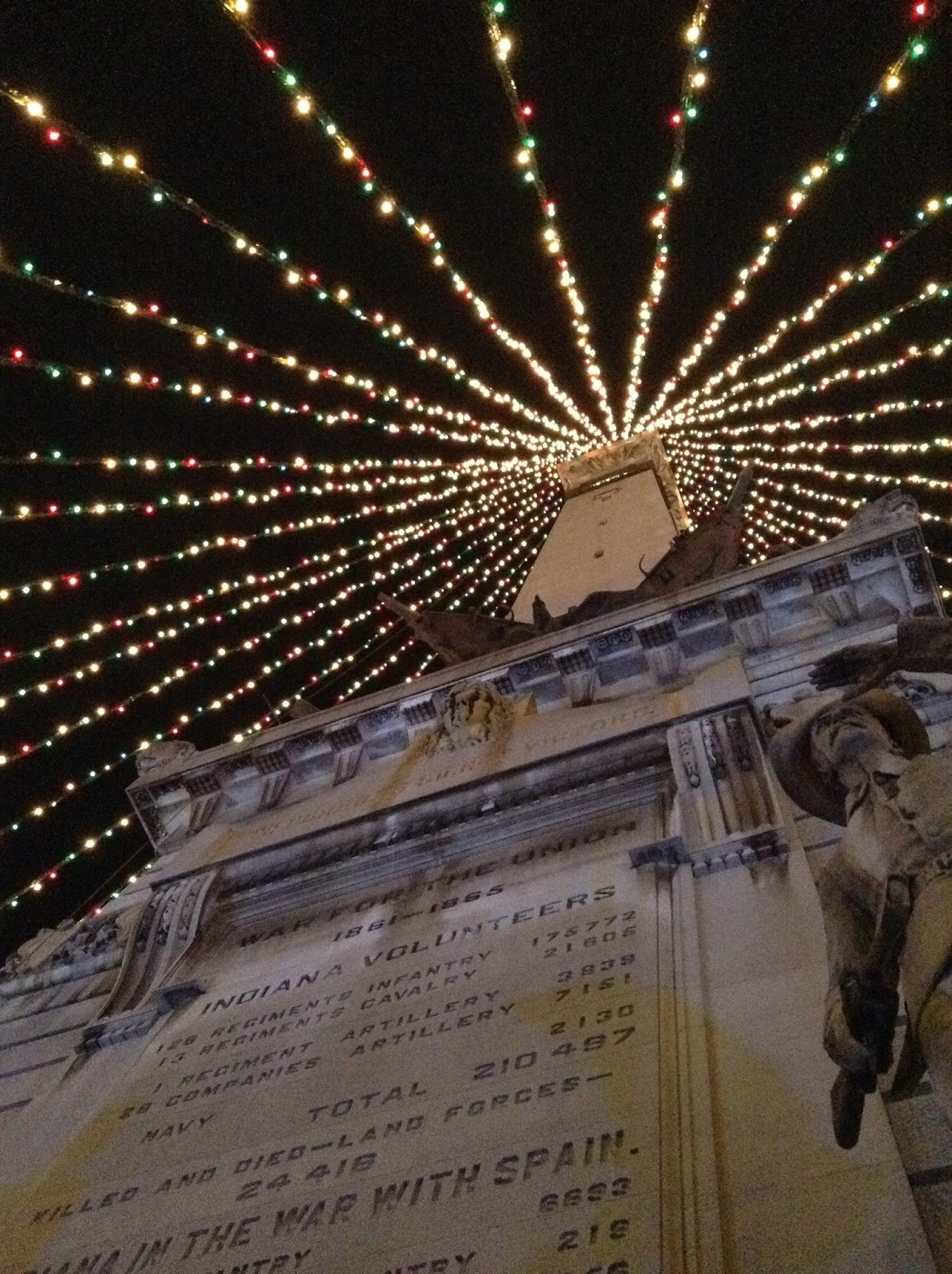At the last minute we made our annual trek downtown to see the Monument Circle tree and lights.
